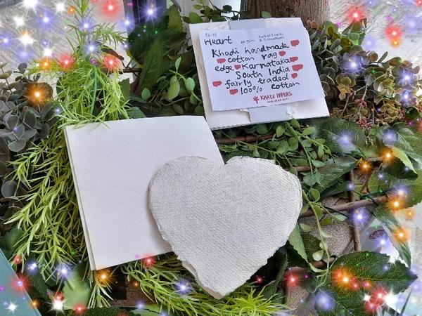 Khadi Hearts and Envelopes are made from long-fibred 100% cotton rag paper, come in packs of 5 and measure 16 x 16 cm.