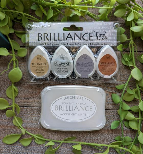 We have a set of mini metallic inks and the stunning Archival Ink Moonlight White.