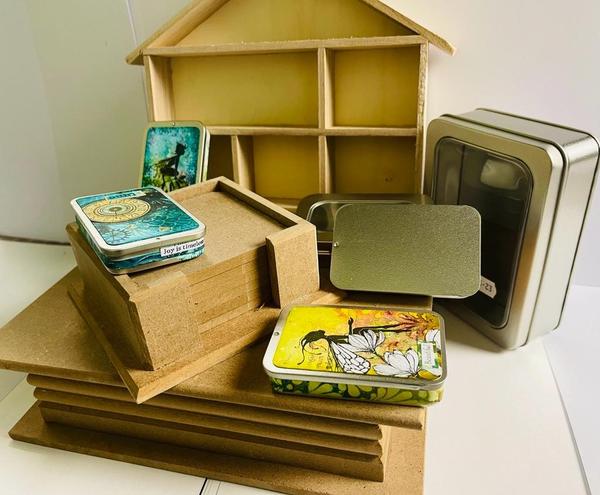 If you really enjoy MDF projects bases, we have those too - there's the magical book boxes, heart shapes, circle shapes ideal for hanging, and coaster packs. If MDF isn't for you then take a look at the tins - there's three sizes to choose from!
