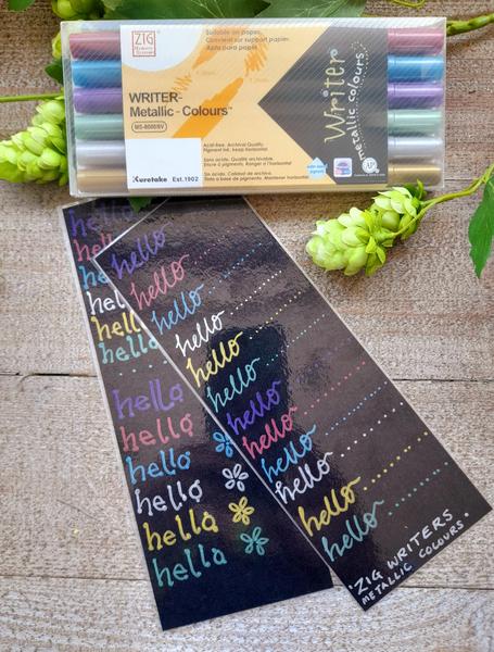 These metallic dual tip markers are perfect for brightening projects on dark paper or to highlight over darker colours. The pens are acid-free, archival quality, waterproof and photo-safe. The duals tips are 1mm and 1.2mm.