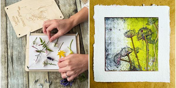 The pressed flowers and foliage are brilliant for creating unique textures and patterns when used on a Lavinia Gel press with the Chalk Acrylic Paints.